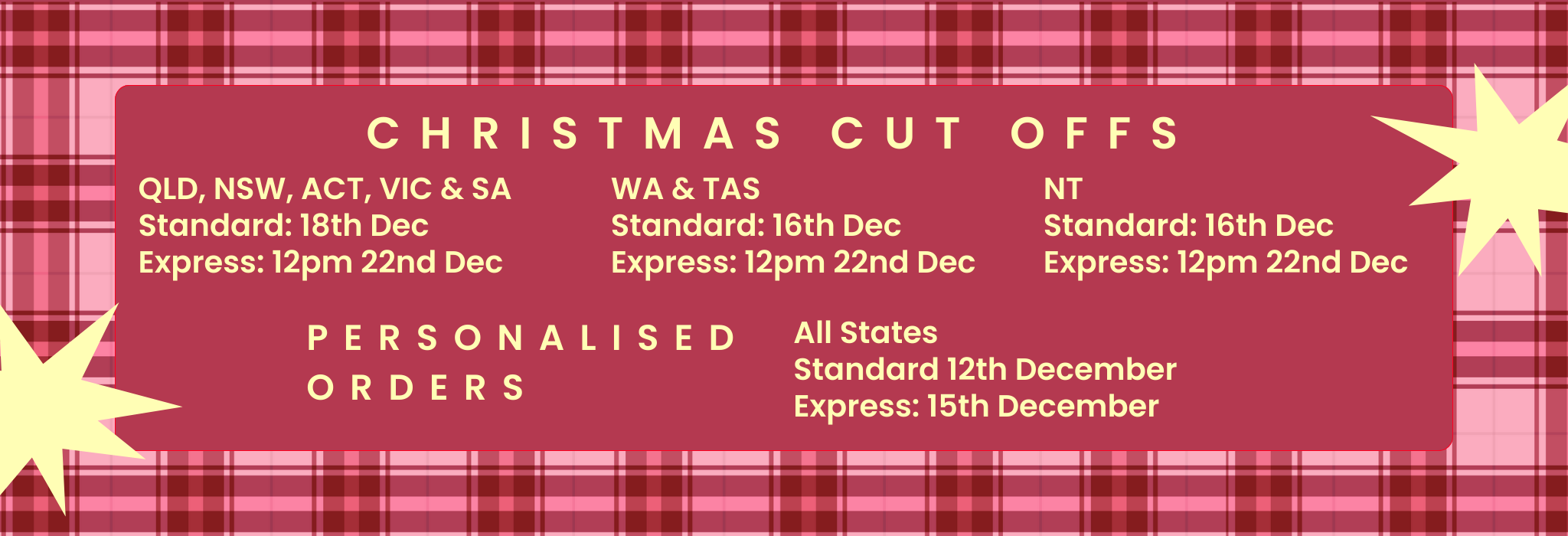 Please allow up to 3 business days for dispatch. Personalised orders are currently taking 1-3 business days.