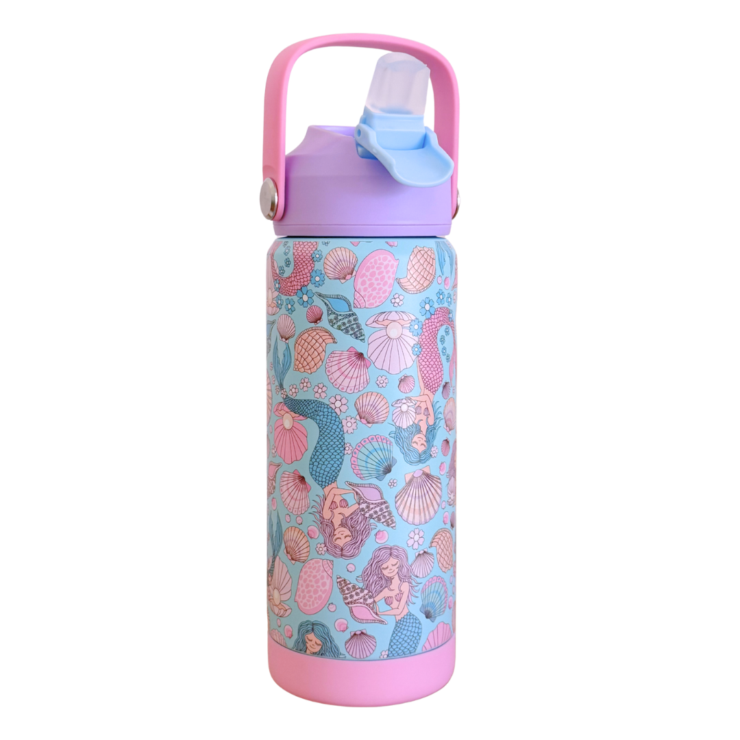 Made from durable double wall stainless steel, this bottle helps maintain drink temperature while staying tough enough for everyday kid life. The flip-up sipper lid features a covered straw design, so little hands never touch the actual straw—helping improve hygiene and keep germs at bay throughout the day. When closed, the straw is fully protected for peace of mind on the go.